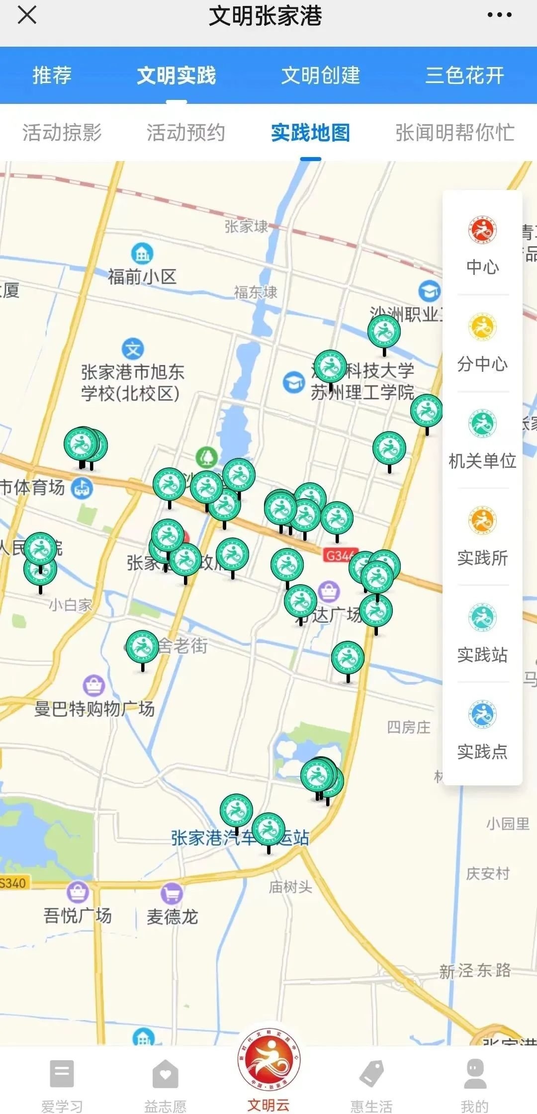 张家港新时代文明实践中心有“中心、分中心、所、站、点”五层组织链。市级层面的新时代文明实践中心,统筹协调全市各条块文明实践和志愿服务工作。教育局、司法局等部门结合各自专业特点,建立理论、文化、法治、环保等分中心,凝聚各部门合力。同时,张家港基于区镇文化中心建设文明实践所,整合村(社区)综合文化服务中心、党群服务中心等建立文明实践站,将触角延伸到基层。