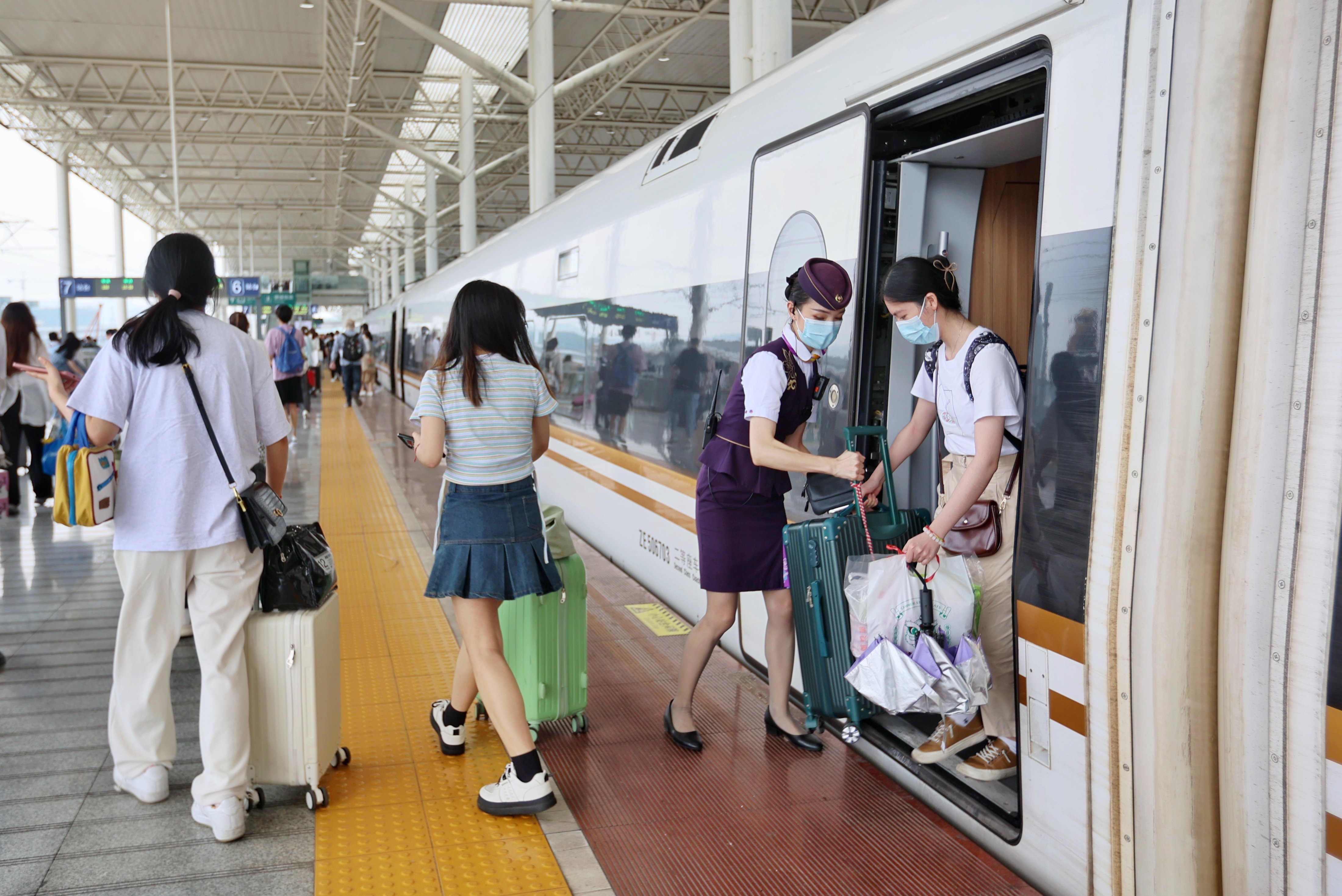 6月24日,澎湃新闻记者从中国铁路上海局集团有限公司获悉,6月23日发送旅客273万人次,同比2019年增长34.7%。6月24日是端午小长假最后一天,长三角铁路迎来返程客流高峰,预计发送旅客302万人次。