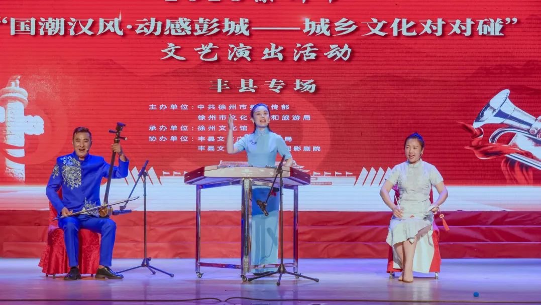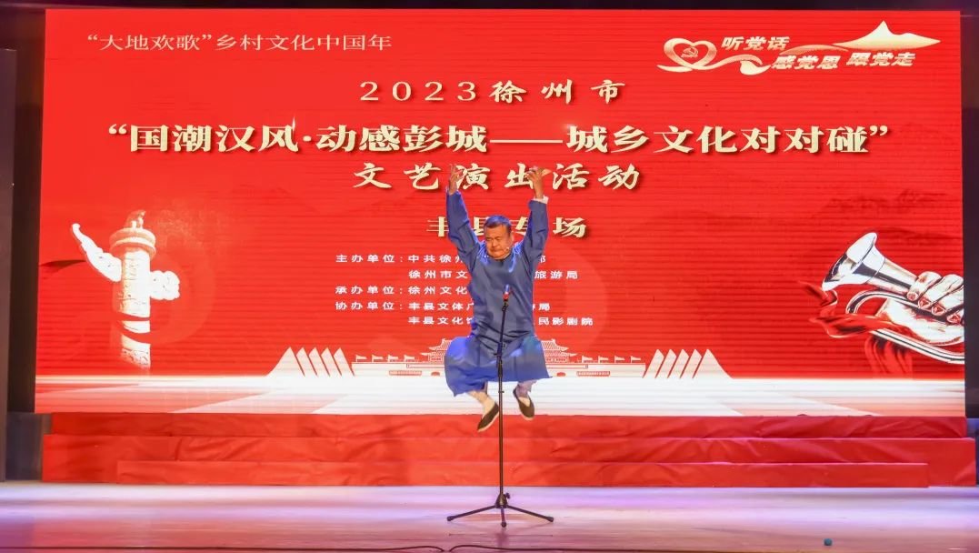 近日,由徐州市委宣传部,徐州市文化广电和旅游局主办的大地欢歌2023年徐州市“国潮汉风·动感彭城——城乡文化对对碰”文艺演出在丰县精彩上演。