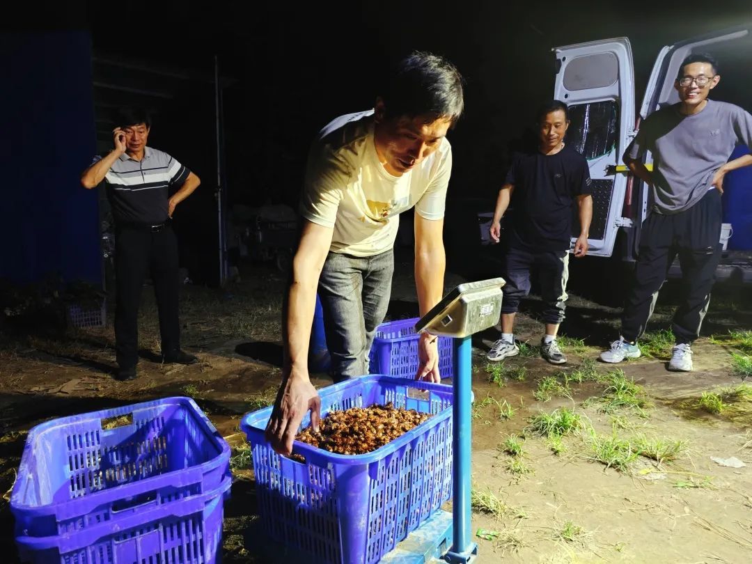 草木苍苍,“光柱”翻飞,勤劳的村民分组行动,这场逮“知了猴”行动将持续到夜里11点钟。除了养殖金蝉销售,风雨金蝉养殖基地还通过开展金蝉孵化育种拉长金蝉产业链,因此这个基地不仅成为果园村金蝉养殖产业的本地名片,还吸引了众多外地客商前来洽谈合作。