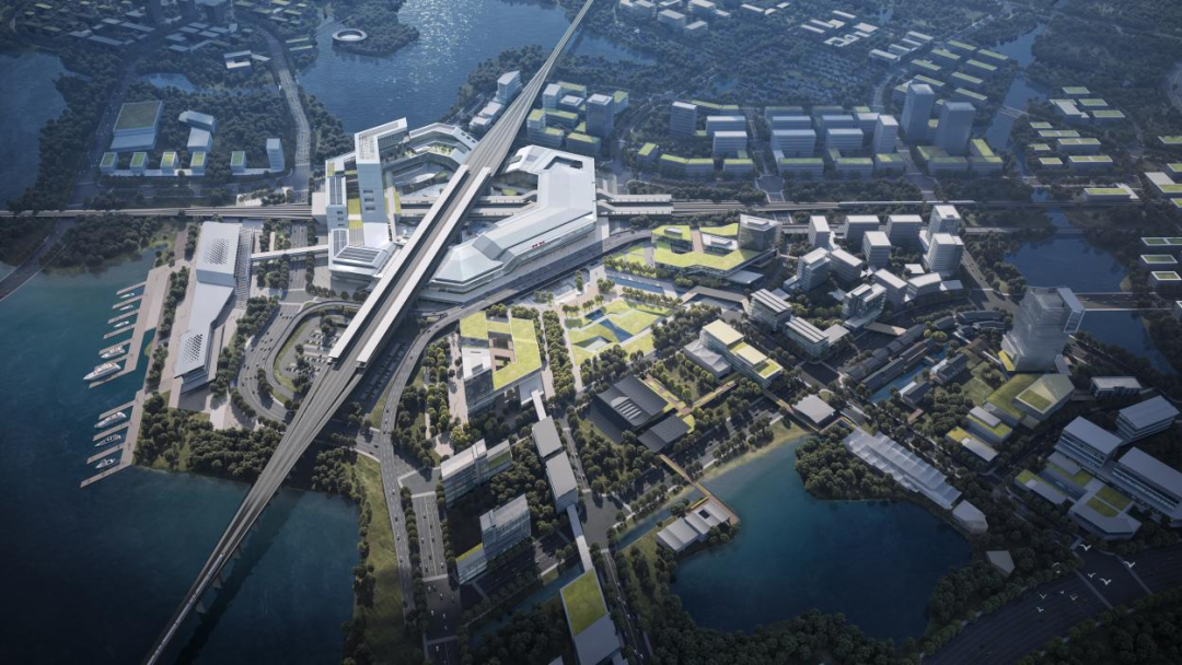 苏州南站是由沪苏湖铁路、通苏嘉甬铁路、水乡旅游线城际铁路、苏州轨交10号线,以及公路、水路运输等多种交通模式共同组成的综合枢纽体系,堪称新一代“站城融合”综合体,也是未来江南水乡新门户地标、新的城市活力核心。