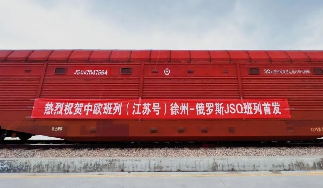 7月20日,伴随着汽笛轰鸣,一列满载290台国产吉利汽车的商品车铁路运输专用车(以下简称JSQ)中欧班列从徐州淮海国际陆港铁路集散中心驶出,将经霍尔果斯口岸出境发往俄罗斯。这是徐州班列首次开行JSQ型中欧班列,也是徐州班列拓展运输模式、开辟贸易商品车运输新赛道的全新探索。