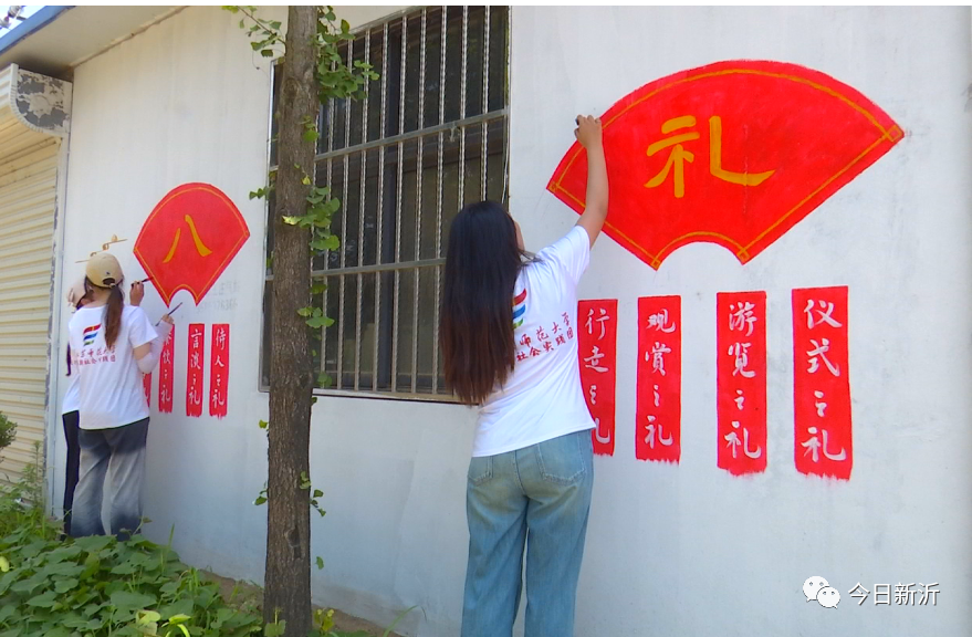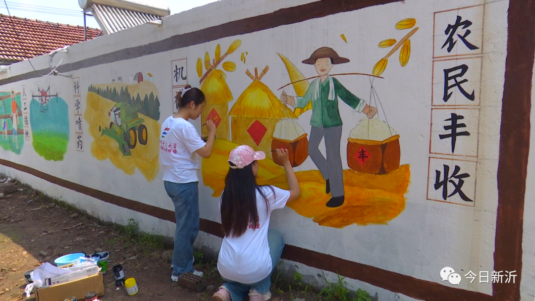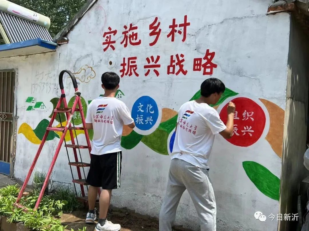 就这样,在马陵山镇花厅村、陈楼村的背街小巷,这群大学生志愿者端着调色板,执笔对墙面作画。由9个大学生组成的团队,每天早出晚归,顶着烈日打稿、勾线、上色。如今,一幅幅传递乡村振兴、乡风文明的手绘墙画以群众喜闻乐见的形式跃然“墙”上,扮靓了美丽乡村,提升了乡村颜值。