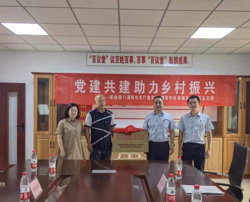 为进一步深化银村合作,实现优势互补、资源共享,共同助力乡村振兴,近日,邮储银行溧阳市支行党支部与溧阳市社渚镇东升村党总支部开展党建共建签约并为乡村振兴服务站揭牌。社渚镇镇领导、镇农业农村局、东升村委负责人和邮储银行溧阳市支行行领导出席活动。