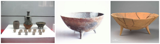 ▲从左往右依次为磁山文化、大地湾文化及裴李岗文化代表陶器