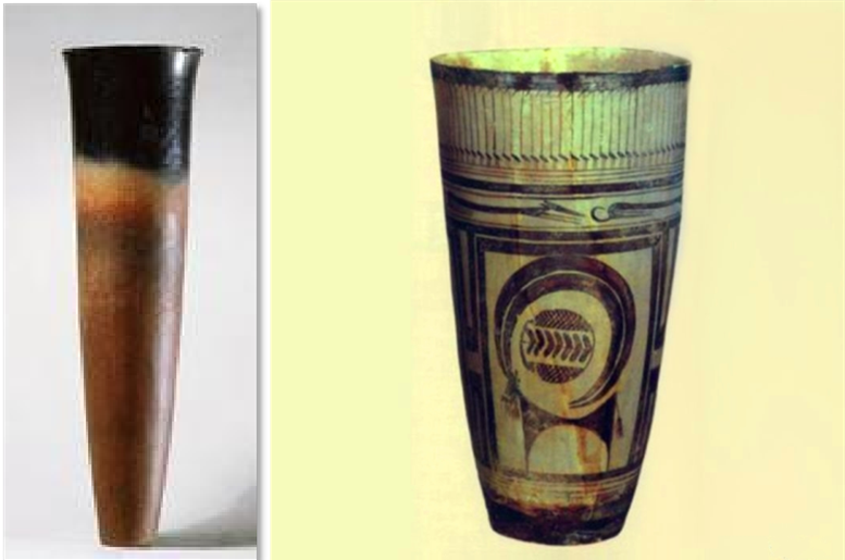 ▲古埃及黑绘陶器及古波斯山羊纹彩绘陶杯