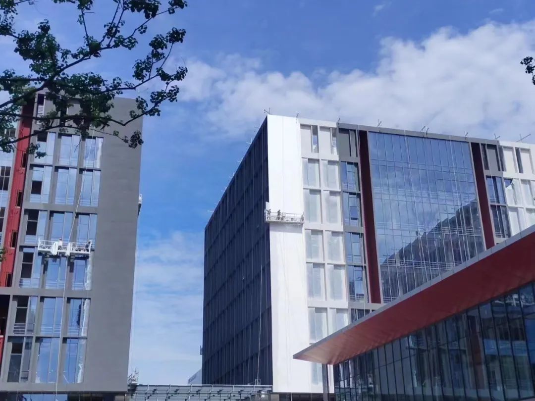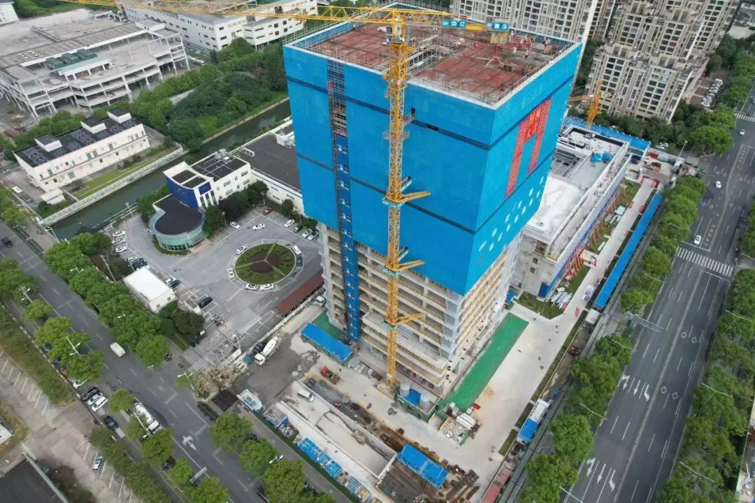 目前,该项目主体结构封顶,正在进行外装施工。