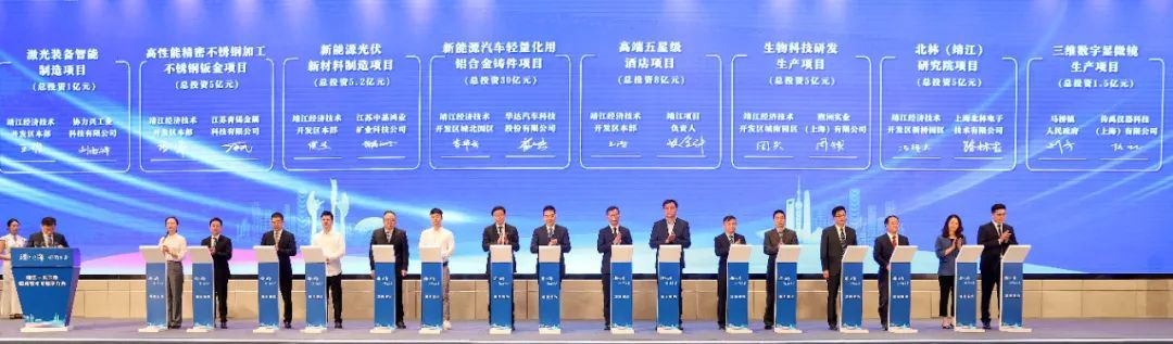 8月18日上午,“靖江近海 潮涌未来”靖江—长三角招商引才专题推介会在上海举行,推动靖沪两地共叙情谊、共话合作、共赢未来,加快靖江深度融入长三角步伐。活动现场签约37个优质重大项目,其中34个产业项目计划总投资279亿元,进一步助推靖江高质量发展。