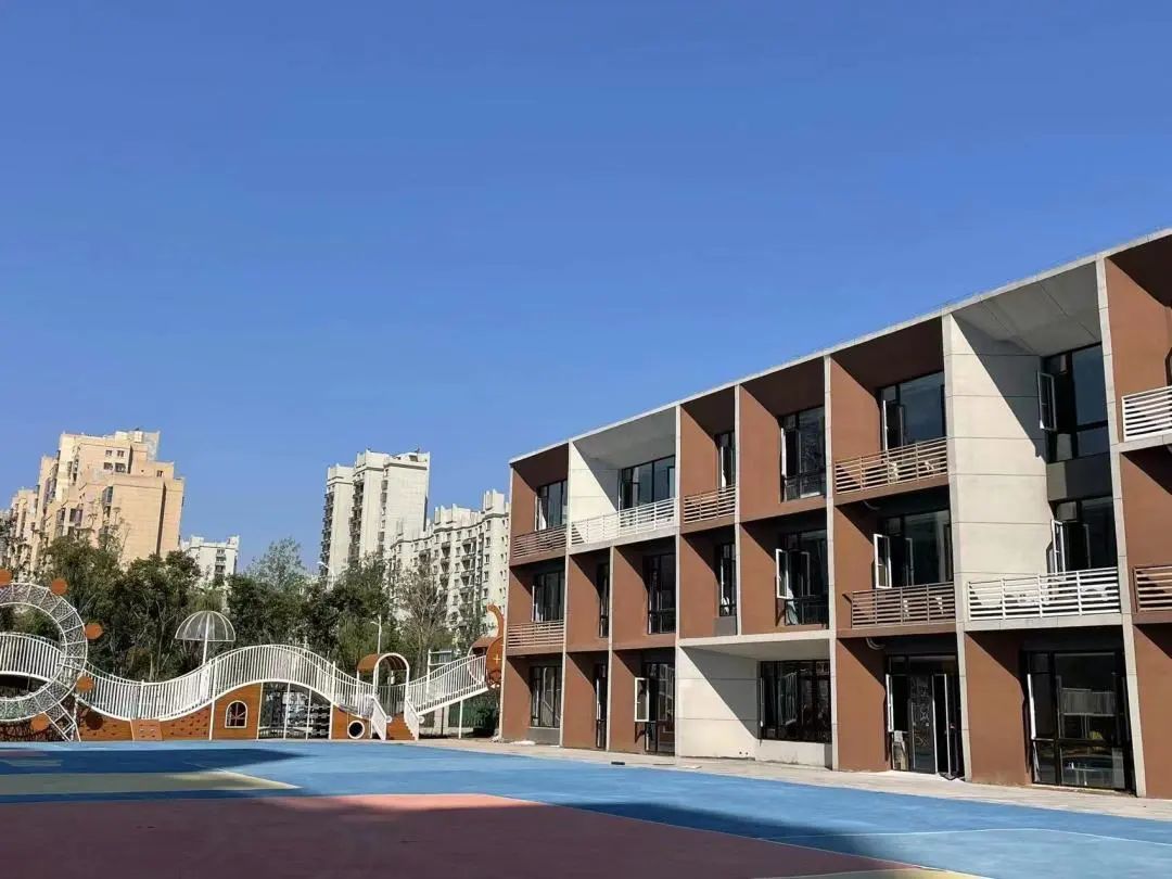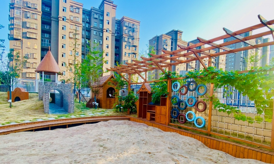 幼儿园配备综合创意馆、科学探究馆、幼儿阅读馆、创造性游戏馆等各种配套齐全的活动馆。户外有开阔的草坪、成荫的花果树木、开放的运动场地、多样的探险微地形、提供安全感的沙水区等,教育环境融于自然、趣味十足。