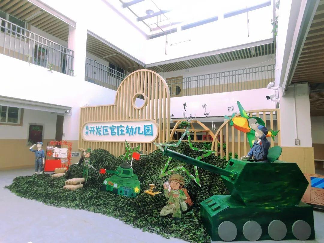 官庄幼儿园是一所公办集体性质的全日制幼儿园,占地面积3700平方米,建筑面积1100平方米,活动场地面积1700平方米,绿化面积1000平方米。园内设9个教学班,共有16名教职工,其中专职教师大学及以上学历达标率为100%。