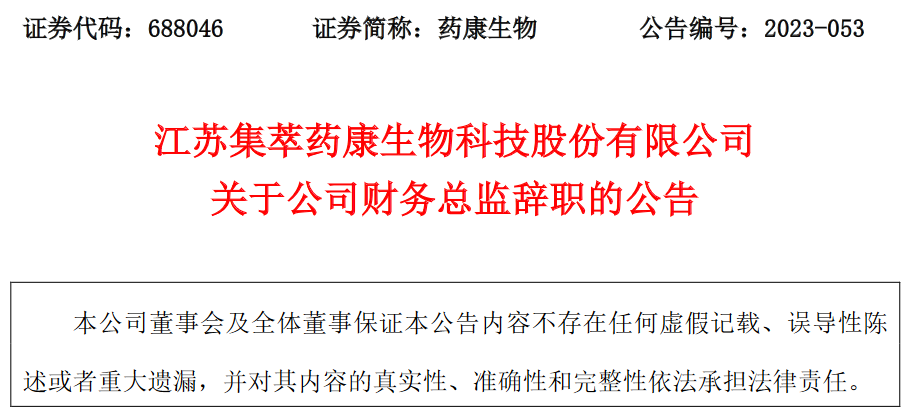 药康生物(688046)于9月8日发布晚间公告称,江苏集萃药康生物科技股份有限公司(以下简称“公司”)董事会近日收到公司财务总监焦晓杉先生的书面辞职报告。焦晓杉先生因个人原因申请辞去财务总监职务,辞任后不再担任公司任何职务,根据《公司法》《公司章程》等有关规定,辞职报告自送达公司董事会之日起生效。