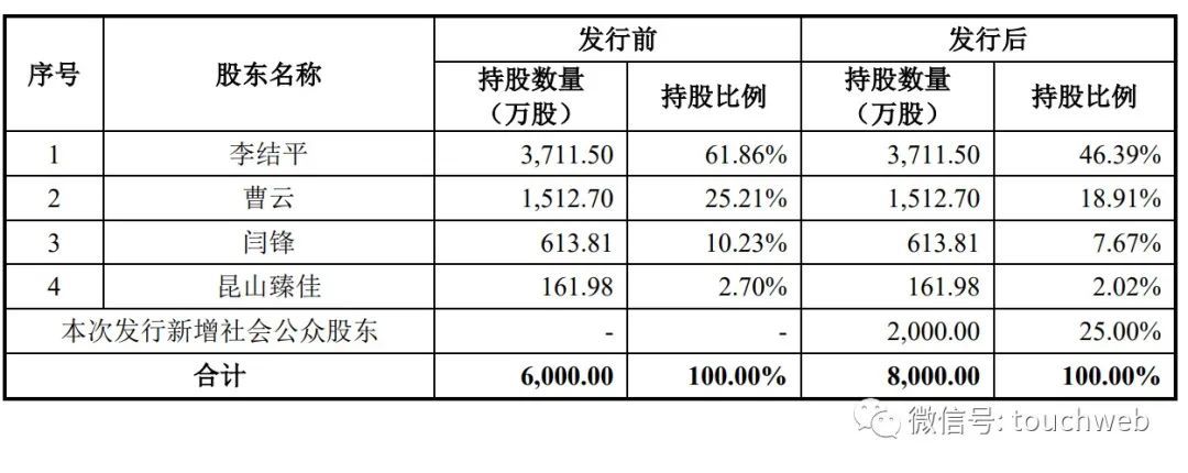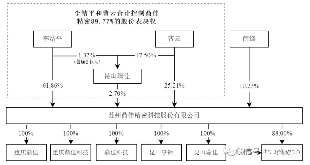 IPO前,公司实际控制人李结平、曹云夫妇直接和间接合计控制鼎佳精密89.77%的股份表决权。