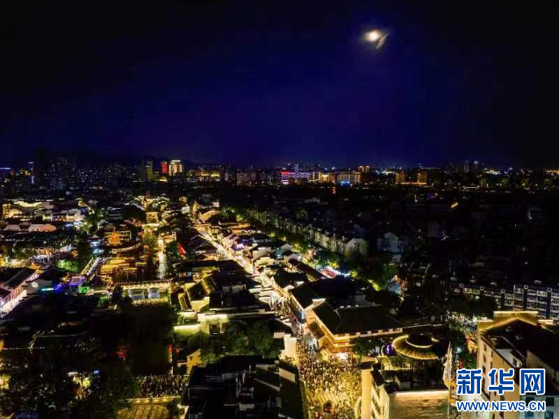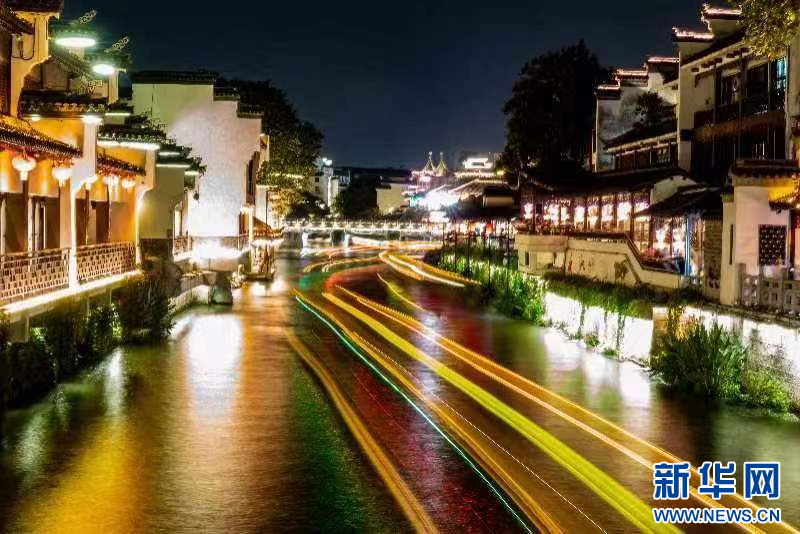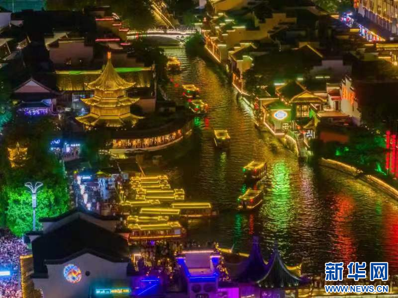 中秋国庆假期,南京夫子庙景区游人如织。夜晚,五色的霓虹灯将景区装扮得宛若天上街市。静静流淌的秦淮河,船行其间,仿佛游走于光影的画卷中。