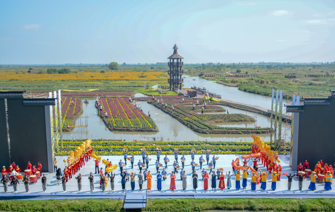 9月26日至10月6日,2023中国·兴化“品蟹赏菊”音乐美食节在千垛景区火热进行,实景演出《一念千垛》每日上演,带八方游客“沉浸式”感受兴化原生态水乡风情。景区廊桥处设有100张小桌,可供400名游客同时登高观看金色菊海,品尝大闸蟹、香醇黄酒和清甜花茶等,给游客们带来视觉和味觉的双重享受。