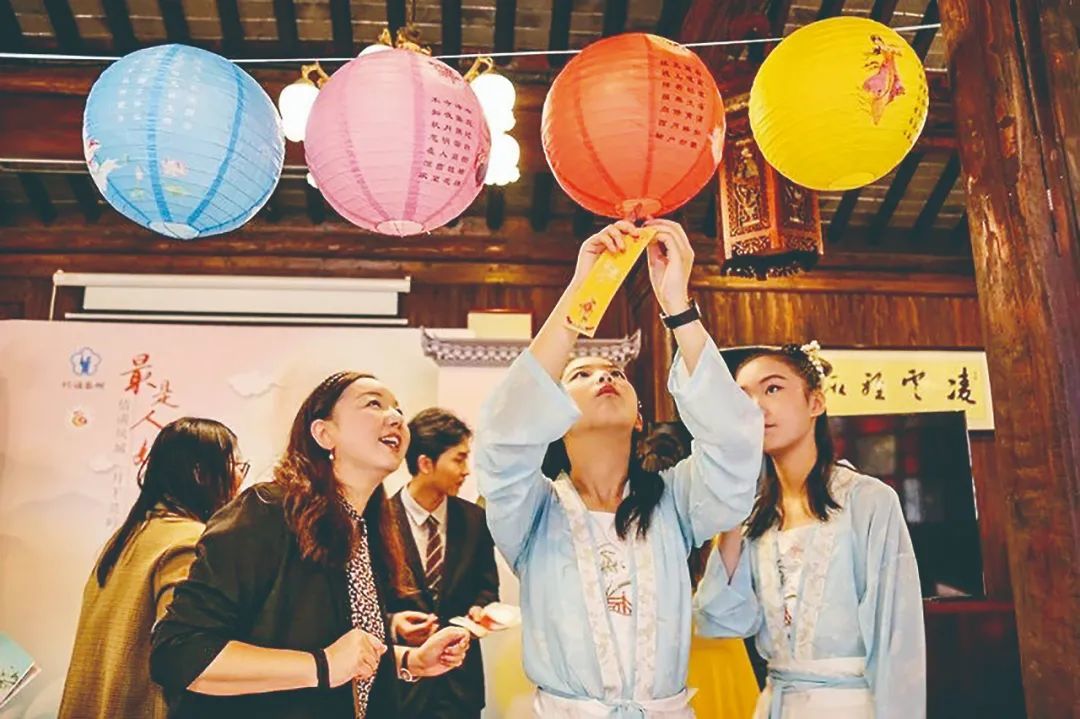 9月29日,由市教育学会吟诵教育专业委员会、市文化馆联合主办的“最是人间好时节”2023中秋吟诵诗会在海陵区稻河古街莲花府邸茶空间举行。师生身着精美的国风汉服,现场朗诵《水调歌头•中秋》《古朗月行》《诗经•陈风•月出》等13首诗词,另有猜灯谜、尝月饼等互动环节。