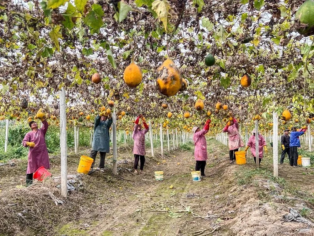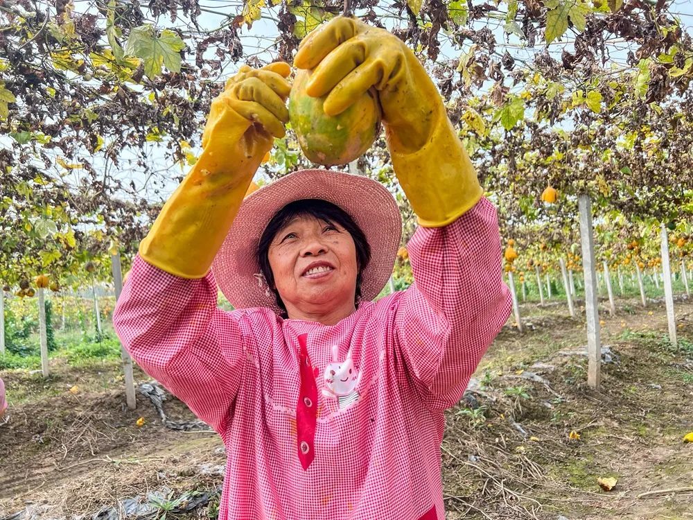 秋风袅袅硕果累,一片瓜蒌十里香。走进何桥镇付村的瓜蒌产业园,一颗颗黄澄澄、绿油油的瓜蒌沉甸甸地吊满藤架,散发出沁人清香。