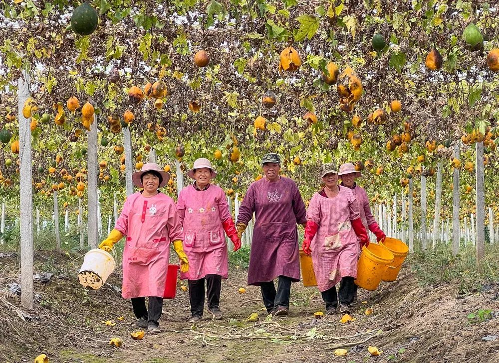 瓜农们提着塑料桶,穿梭在田垄间。
