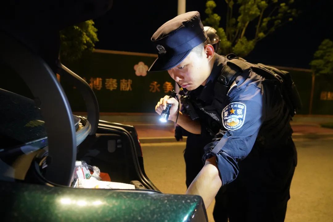 ▲民警开展 夜间巡逻盘查