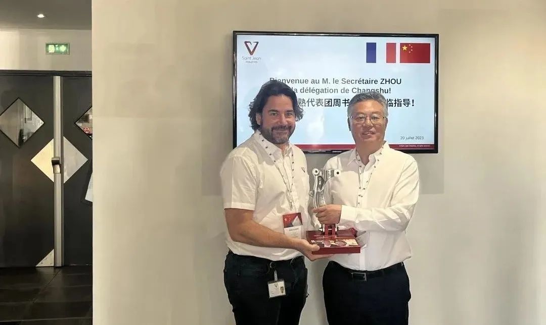 期间,周勤第一行就曾拜访圣让工业集团总部,双方对圣让常熟工厂二期项目的推进事宜进行了细致沟通,确定了土地供应时间及项目开竣工期限。常熟代表团还为埃米尔·迪赛里奥带去了一份特殊的礼物——一个富有常熟传统文化内涵的中文名字“虞米圣”。此前,埃米尔·迪赛里奥来常时,周勤第曾与其约定要为他取一个中文名字,赴法访问时的正式践诺,体现了常熟政府有诺必践的诚信精神。