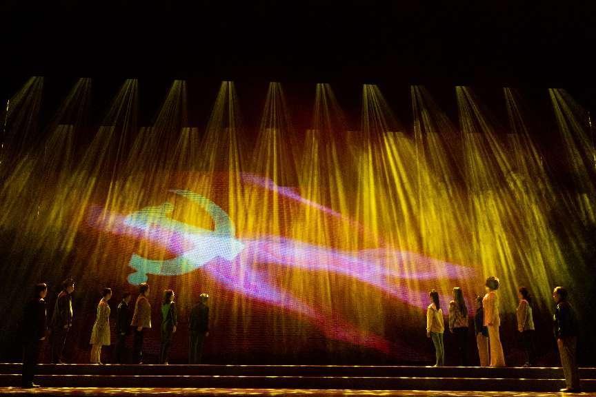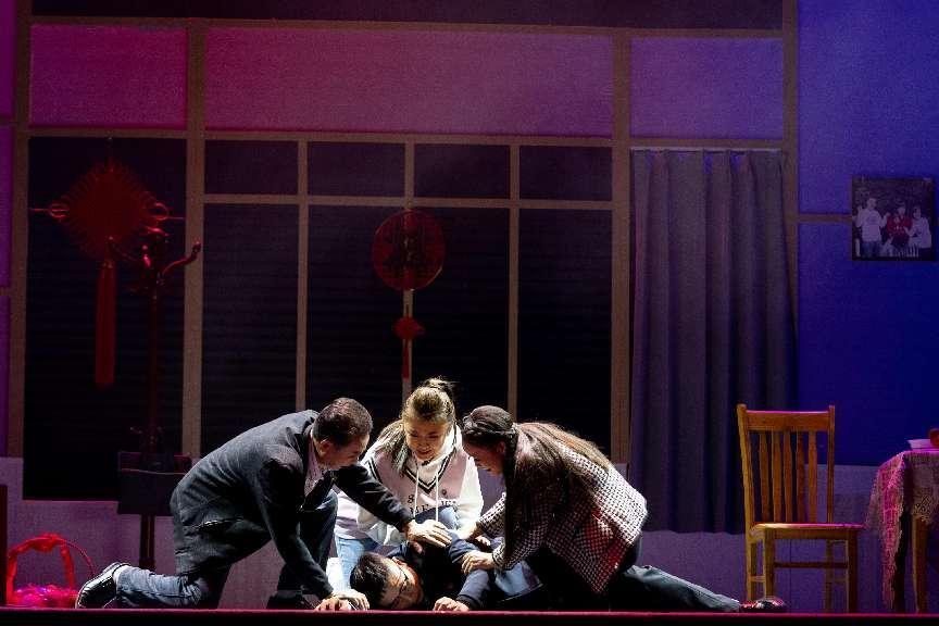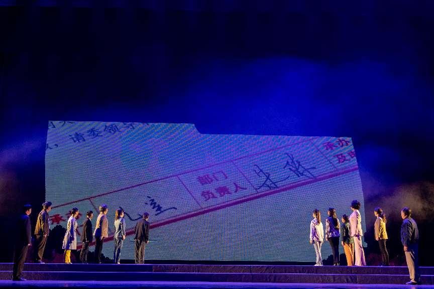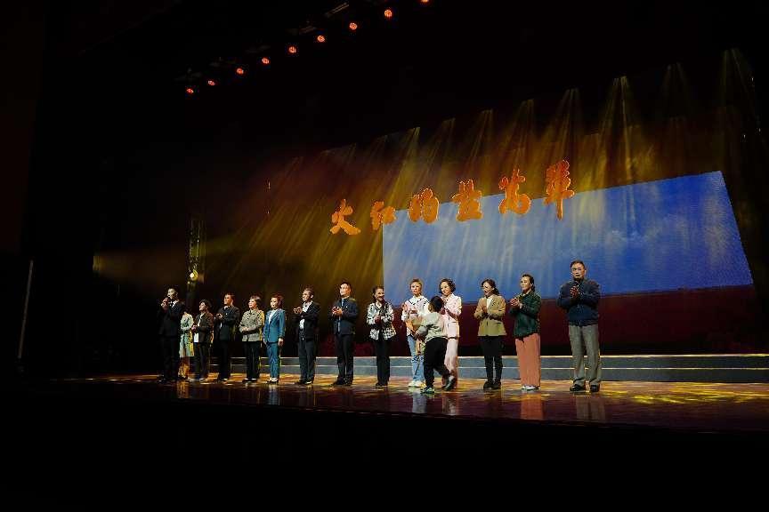 “盐蒿草,草盐蒿,不怕海风吹。不怕海水泡,根扎盐碱斗海潮。”在声声童谣中,朱陈同志的家人慢步走上舞台,眺望着大屏上那片红如烈火的盐蒿草。这就是本剧的开端,同时也与剧名遥相呼应。