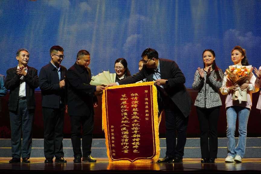 本剧由中共滨海县纪律检查委员会、滨海县监察委员会指导,中共滨海县委宣传部、滨海县文化广电和旅游局主办,滨海县淮剧团承办。演出结束之后,朱陈同志的家人登台,向相关单位及全体参演人员赠送了锦旗。此刻,到场观众纷纷涌向舞台前端,向朱陈同志家人热烈鼓掌致意,浓厚的人间正气和热烈的演出氛围交相辉映。演出结束,但全剧所传达出的“盐蒿草精神”仍在观众脑海中激荡不已。正如结尾处传唱的主题曲:“又见盐蒿草,伴着海风长。长风为你歌一曲,乡土记着你情怀。”充满深情的结尾与开篇交相呼应,激荡人心,鼓舞前行。(张卫星 郑巧玲 韩成建 王张滨 陆蓉 梅丛明)