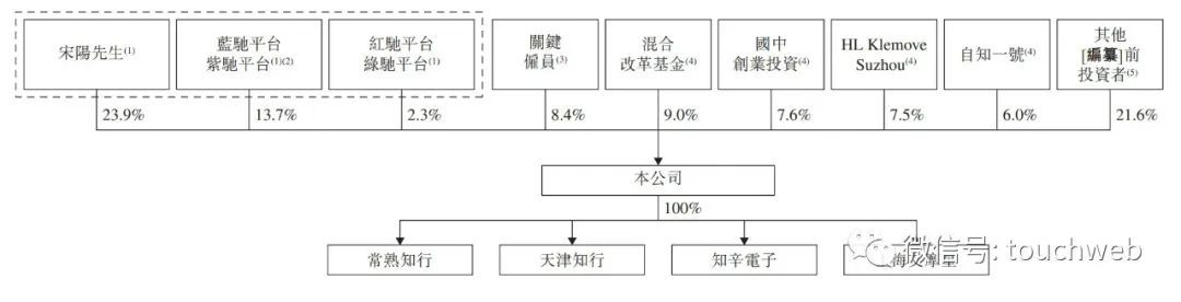 截至最后实际可行日期,知行汽车的创始人、董事长、执行董事兼首席执行官宋阳直接或间接(透过蓝驰平台、紫驰平台、红驰平台及绿驰平台)有权行使公司约39.9%已发行股本所附带的表决权。