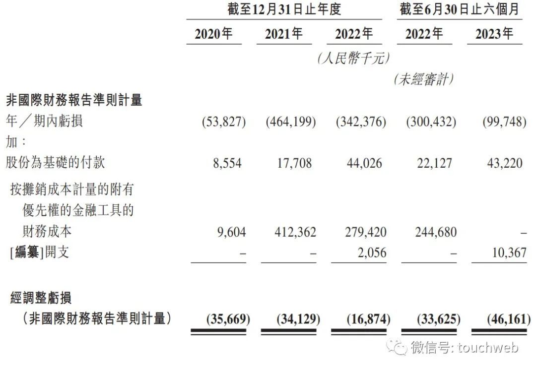知行汽车2020年、2021年、2022年经调整亏损分别为3567万元、3413万元、1687.4万元;2023年上半年经调整亏损为4616万元。