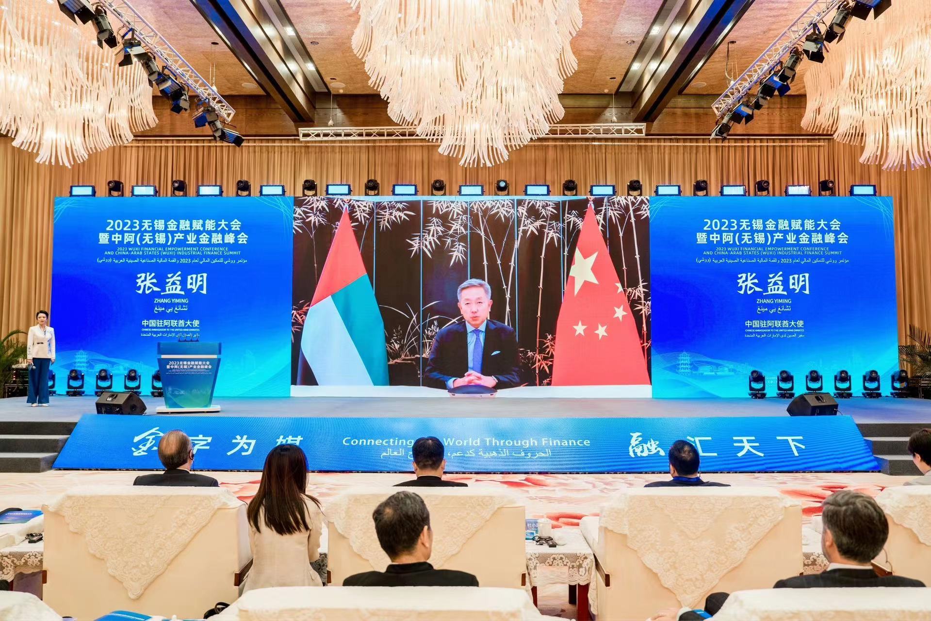 中国驻阿联酋大使张益明视频祝贺。无锡市委书记杜小刚、阿联酋塔克投资主席穆罕默德·阿尔达赫里致辞。