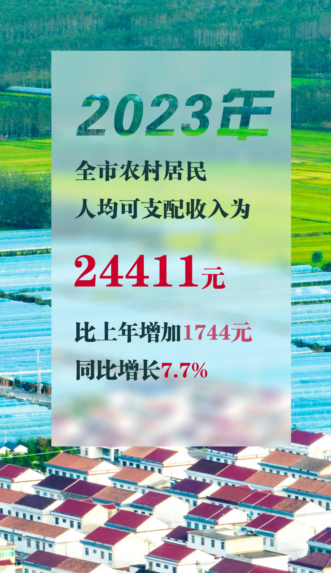 近日,国家统计局连云港调查队发布数据显示:2023年全市农村居民人均可支配收入为24411元,比上年增加1744元,同比增长7.7%。
