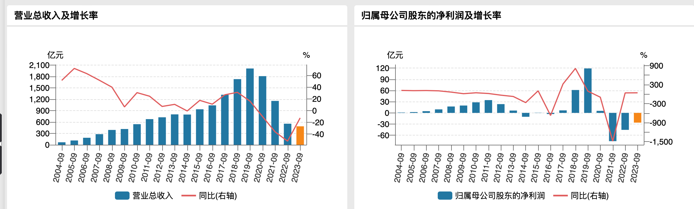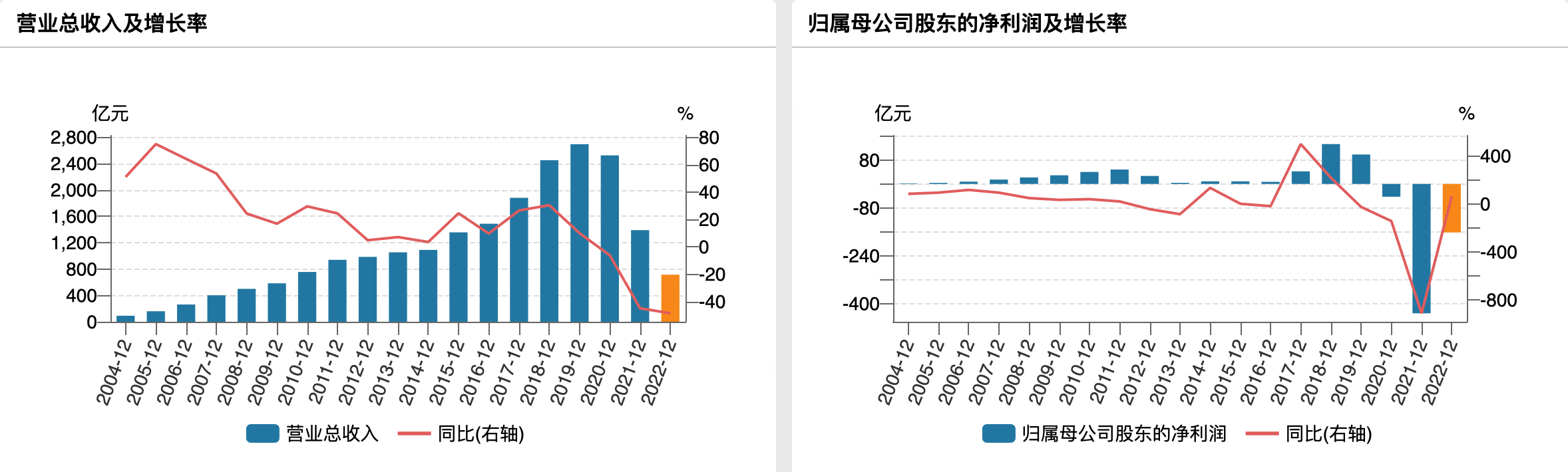 据wind数据显示,2019年起苏宁易购营收不断下滑。2020年起由盈转亏,2022年开始逐渐减亏。