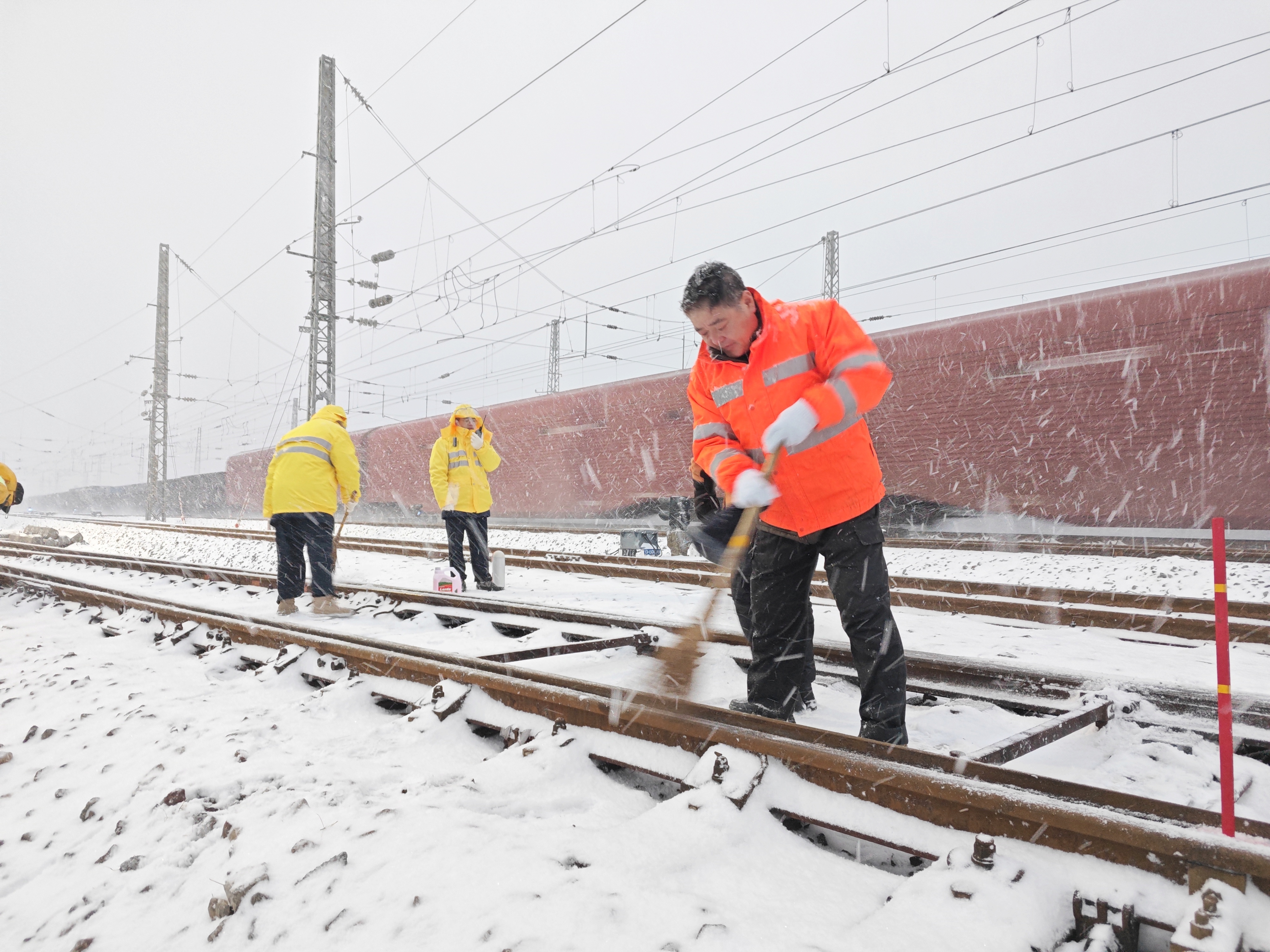 2月1日午后起,安徽蚌埠、滁州、淮南、淮北、阜阳等地陆续飘起鹅毛大雪。铁路部门,提前准备,预先布置,重点加强站车饮水、充电、候车等后勤保障服务;组织力量对车站进出通道、站台进行扫雪和防滑垫铺设作业。徐州电务段、蚌埠站、淮南西站、上海通信段成立党员突击队,奋战在徐州、连云港、新沂、蚌埠、淮南、淮北等地枢纽站(场),第一时间扫除积雪,加强应急值守,为通过列车提供安全运输保障。截至2月1日当天,蚌埠、淮南、淮北、阜阳、徐州等地铁路单位,共计出动1200余人次,进行道岔融雪、接触网除冰、防覆冰等应急响应作业。