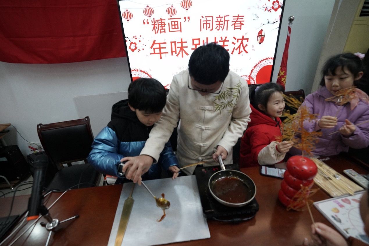 糖画,俗称“倒糖人儿”或“糖灯影儿”,是一种以糖为材料来进行造型的传统民间手工艺,亦糖亦画,可观可食。2024年春节即将到来之际,在南京市公益创投(秦淮区)项目支持下,南京市秦淮区钟晓敏爱心工作室联合五老村街道新街口商业街社区,开展了“糖画闹新春,年味别样浓”非遗糖画体验活动。活动旨在带领文化志愿者,丰富辖区青少年寒假生活,在妙笔糖画的故事中去感受非遗的魅力,让民族文化传承在孩子们的心中烙下深深印记。