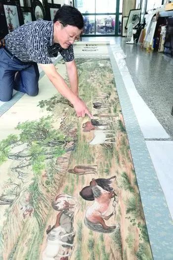 发绣长卷《郎世宁百骏图》是陈伯余的代表作,这幅发绣内长10米,内宽1.2米,陈伯余绘制了一年多时间,由8名绣女精刺细绣,耗时四年之久,被估市值不低于600万,在2014年被专家评为国宝级作品。