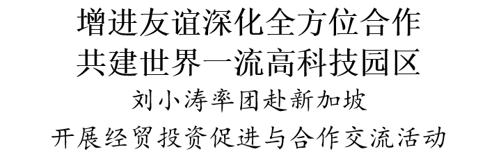 今年是中新苏州工业园区开发建设30周年。2月19日至21日,省委常委、苏州市委书记刘小涛率团赴新加坡开展经贸投资促进与合作交流活动,充分把握中新关系提升为全方位高质量的前瞻性伙伴关系契机,不断增进友谊,深化苏州与新加坡全方位合作,努力打造开放创新的世界一流高科技园区。
