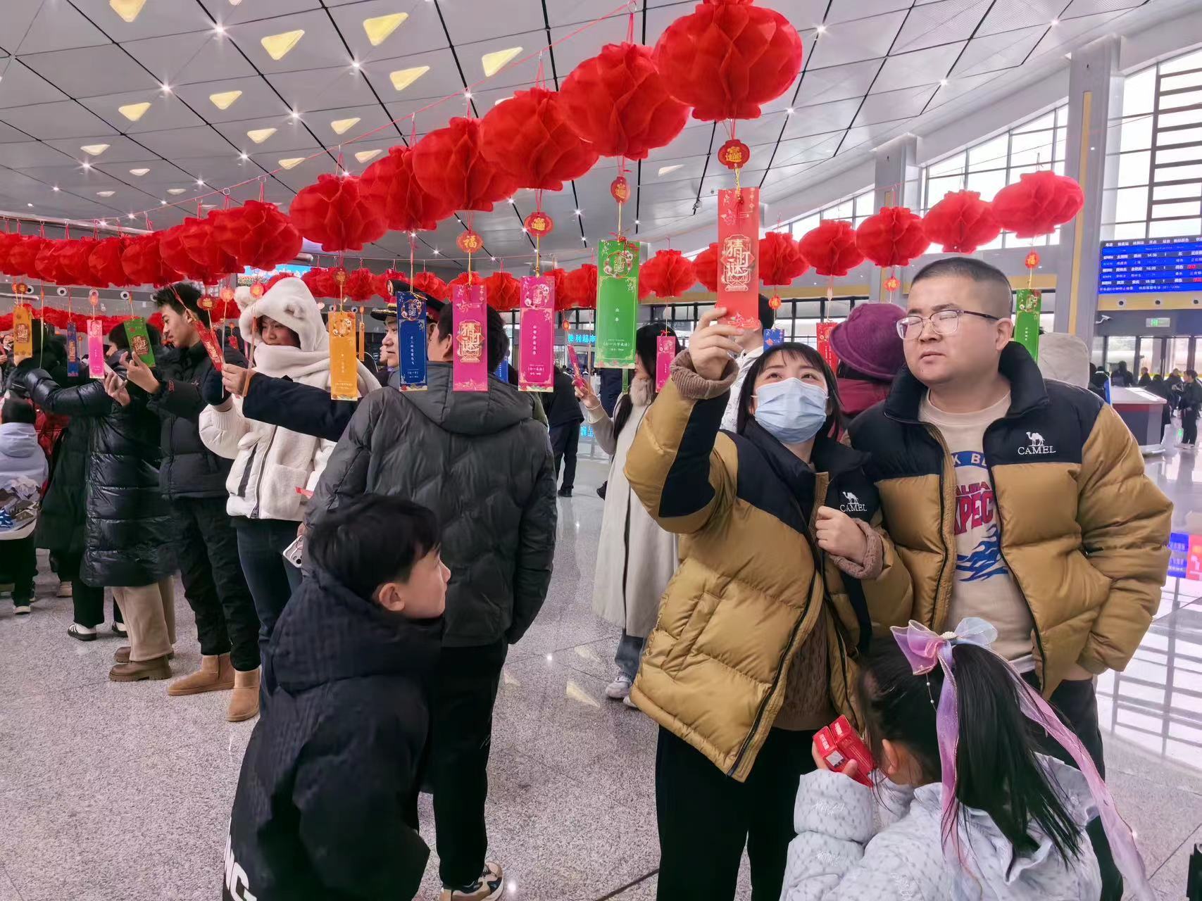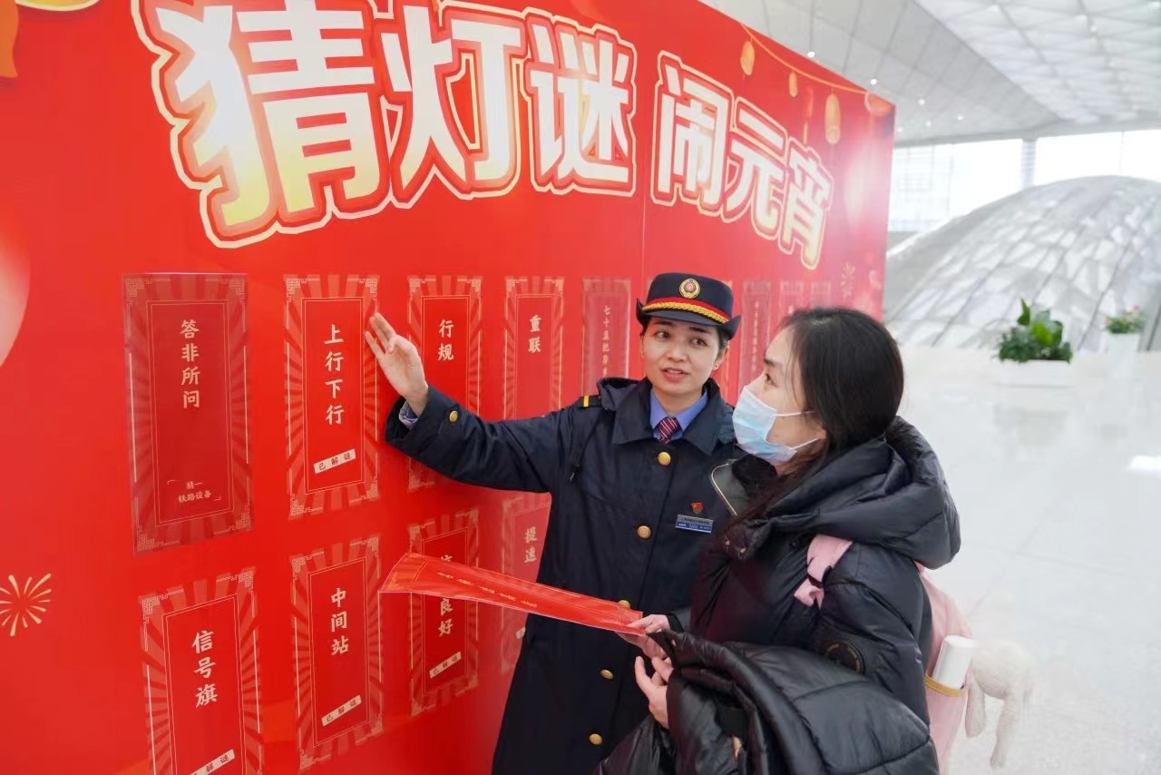 2月23日,杭州东、太湖南等车站举办“迎元宵·猜灯谜”主题活动,受到旅客广泛欢迎。22日至24日,上海、南京、杭州、合肥客运段在各自担当的一些车次上组织了多场迎元宵趣味活动,旅客在一片欢声笑语中返岗、返校。金华车务段联合路外20多家单位,在金华、丽水等地推出“畅行联盟”,服务旅客返岗。