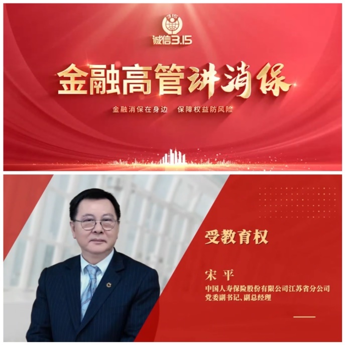 中国人寿寿险江苏省分公司积极落实消费者教育宣传主体责任,聚焦金融为民、金融惠民、金融便民,贴近人民群众需求,及时回应舆论关切,合理引导消费预期,切实提升人民群众满意度和获得感,满足消费者对金融保险服务的更高要求与更美好期盼。