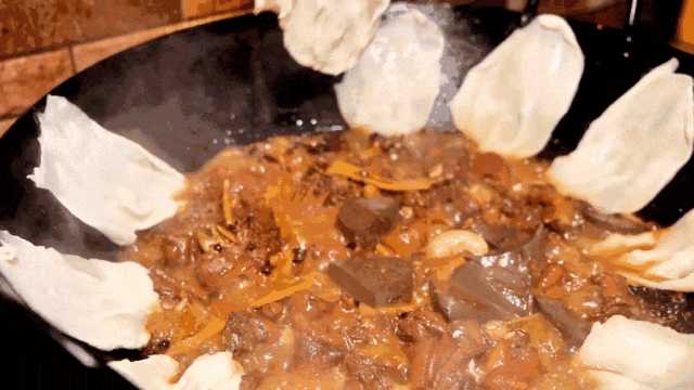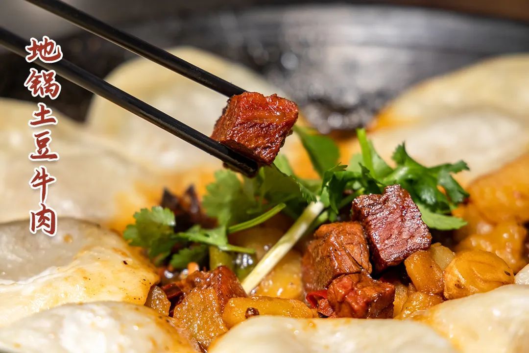 地锅菜中最著名的就是地锅鸡,铁锅经过预热后,倒入事先准备好的油料,待油温升高便下入鸡块进行快速翻炒。这时,鸡肉表皮迅速收紧,形成一层微微焦黄的外壳,散发出诱人的香气。接着,加入葱、姜、蒜等调料,与鸡肉一同爆香,使得锅气的层次更加丰富。随后,倒入配菜,与鸡块一起炖煮。慢火收汁儿,贴上“喝饼”,锅气逐渐渗透到每个食材之中,使得整道菜肴的味道更加浓郁而醇厚。当打开锅盖的那一刻,一股浓烈的香气扑鼻而来,让人顿时食指大动。