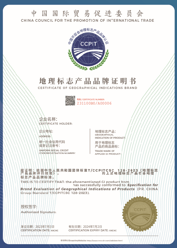 中国贸促会地理标志产品认证业务填补了我国地理标志产品品牌国际化建设空白,出具的《地理标志产品品牌证明书》适用于中国本土和在中国市场销售的国外地理标志产品。该证明书基于地理标志制度和国际经贸协定,对核准使用地理标志产品品牌的市场主体“优中选优”,以向国内外采购商贸易商提供优质地理标志品牌企业和商品。获证企业可以在产品包装、展会展板等企业宣传材料中使用中国贸促会地理标志产品品牌认证专用LOGO,同时免费享有中国贸促会多种综合服务,如:参加各类国际经贸专业培训;纳入贸促会地理标志企业认证名录,在国际平台展示,向国内外贸易商、采购商、海外对口商协会优先推荐;优先参加“中国国际地理标志品牌合作大会”“中欧地理标志产品合作会”等展示推介和贸易对接平台。