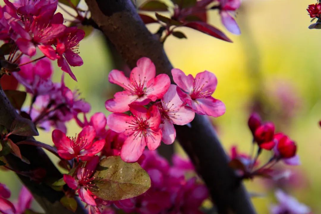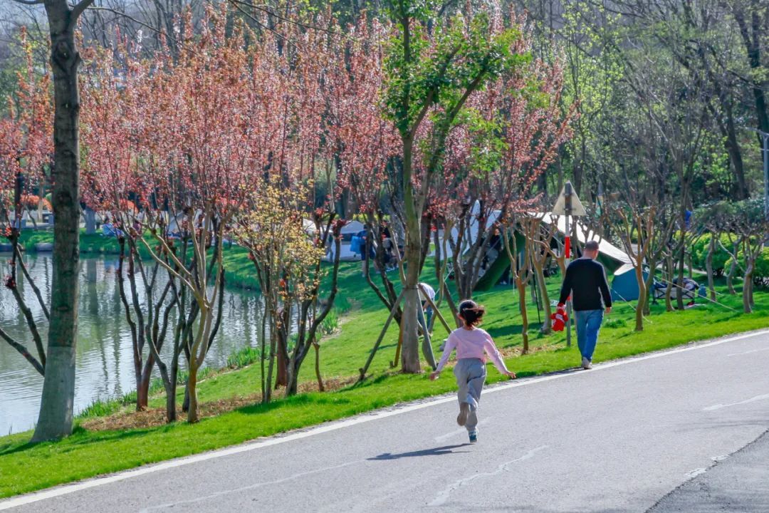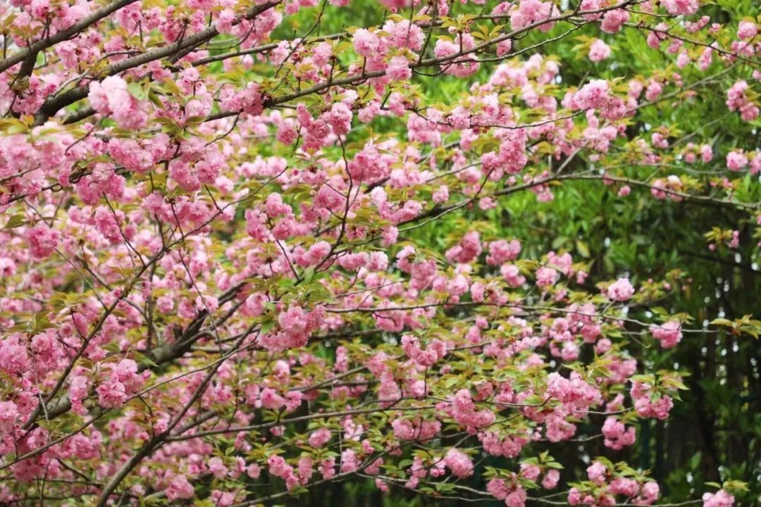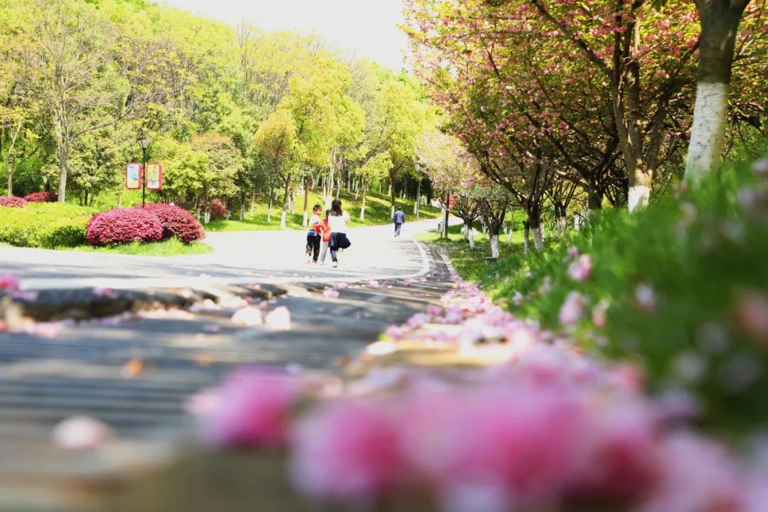 聚宝山公园植物品种丰富,目前园内晚樱、海棠、二月兰进入盛放期。