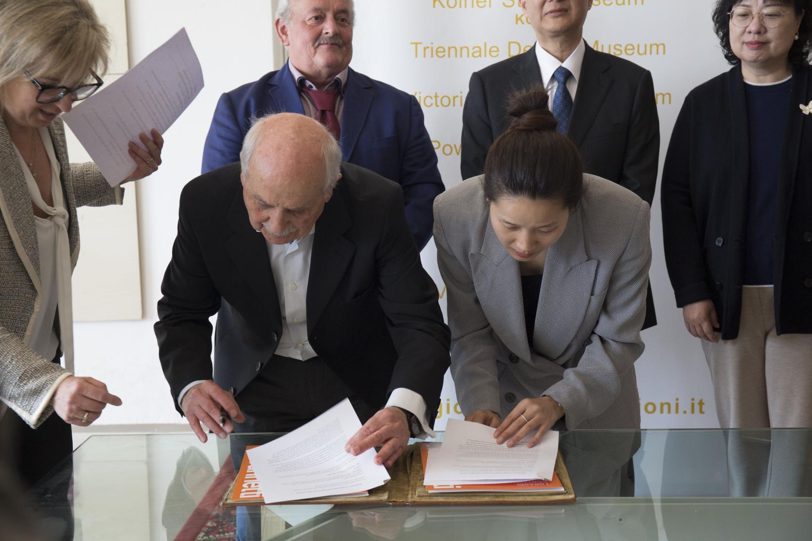百工造物团队受到盛情邀约前往 Giovannetti Collezzioni 公司位于卡萨尔吉迪(Casalguidi) Via Pierucciani 的总部,在 Serravalle Pistoiese 市市长 Piero Lunardi 以及中国江苏省商务代表团的见证下,双方签署了在意大利生产中国著名设计师、艺术家马聪设计、 Giovannetti 品牌产品的商业协议。乔瓦内蒂创始人Benito Giovannetti 与百工造物总经理欧阳晓春代表双方品牌签字完成了这场令人瞩目和期待的合作仪式。