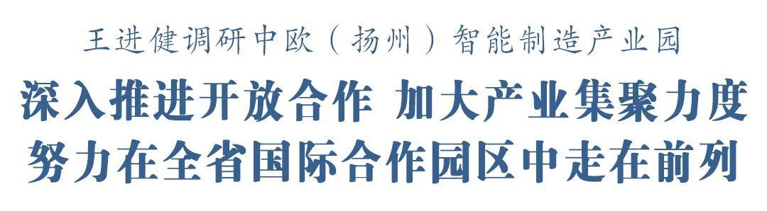 中欧(扬州)智能制造产业园去年创成省级国际合作园区,规划建设3000亩中欧产业园先导区,划分西园、东园、南园三个片区。王进健来到南园规划现场,了解用地征迁和项目招引情况,要求按照产业规划和发展定位,务实高效推进园区建设。中欧产业园服务中心于去年底建成投用,王进健实地察看服务中心硬件设施,要求围绕影响力、示范性、创新性,充分彰显中欧(扬州)智能制造产业园集聚度和知名度。