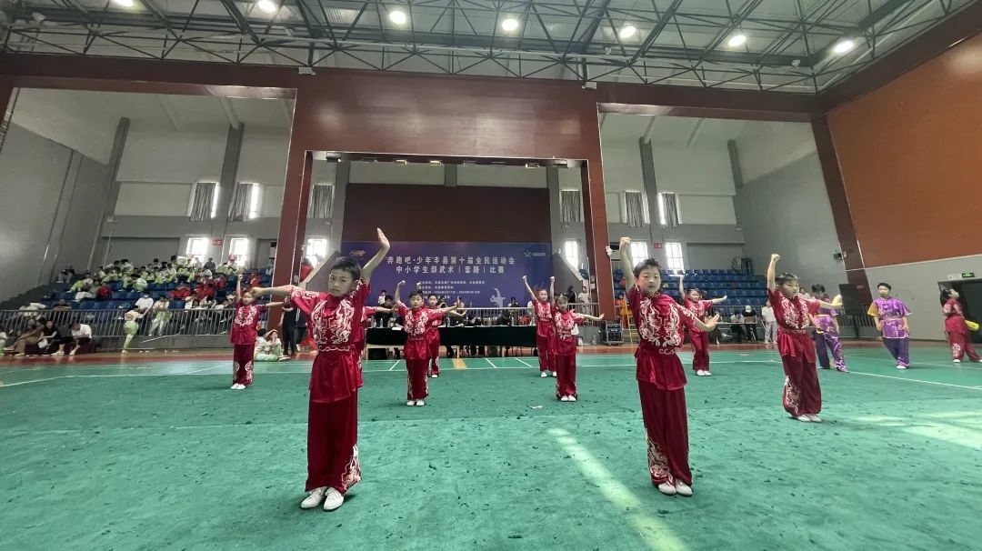 为弘扬中华优秀传统文化,展现传统武术的套路之美,推动武术运动的传承和发展,近日,由徐州丰县文广旅局和丰县教育局联合主办的“奔跑吧•少年”丰县第十届全民运动会中小学生部武术(套路) 比赛在丰县体育馆举行。来自全县各学校和武术俱乐部的400余名青少年武术爱好者为观众带来了一场“视觉盛宴”,共享武术运动魅力。