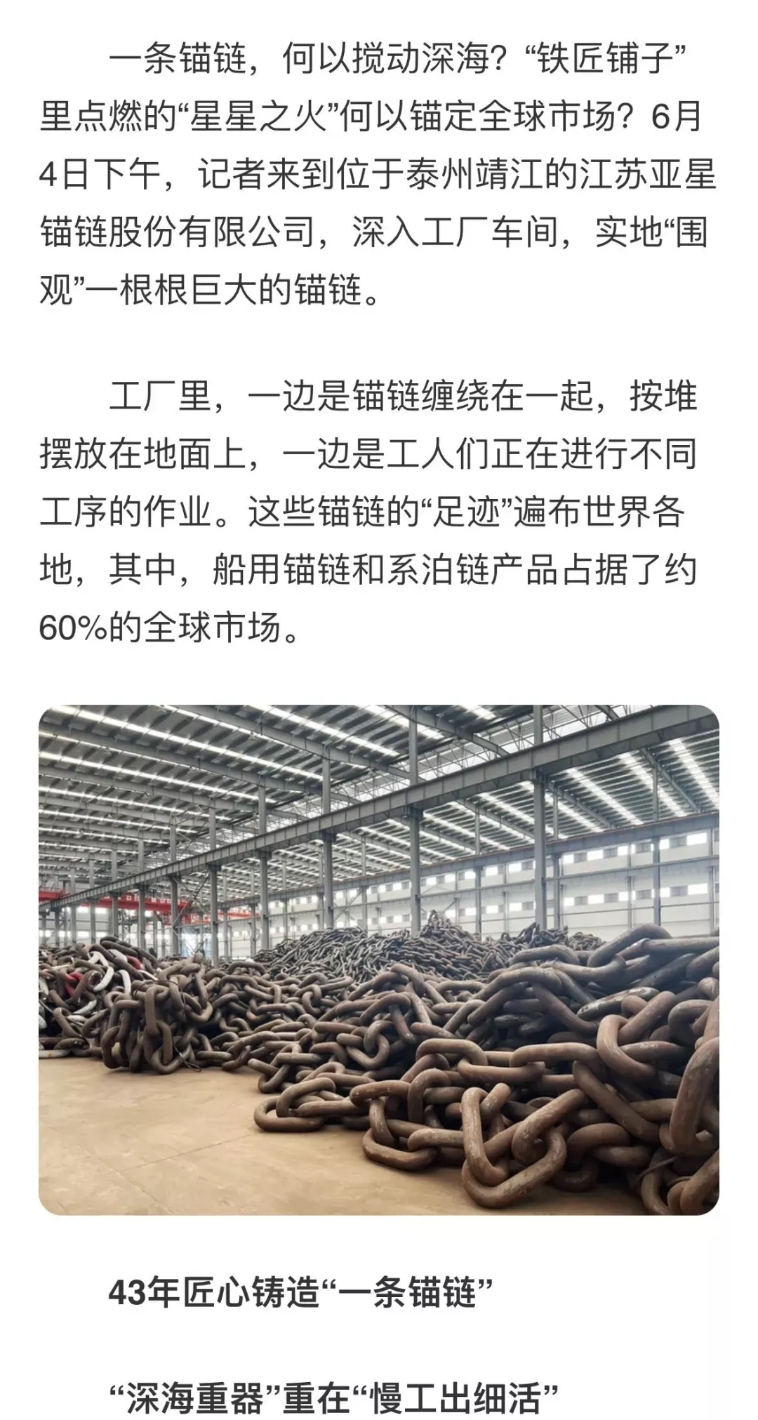 “一条锚链”牢牢稳住全球领先地位》