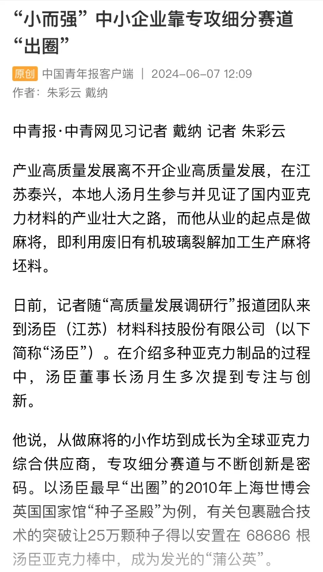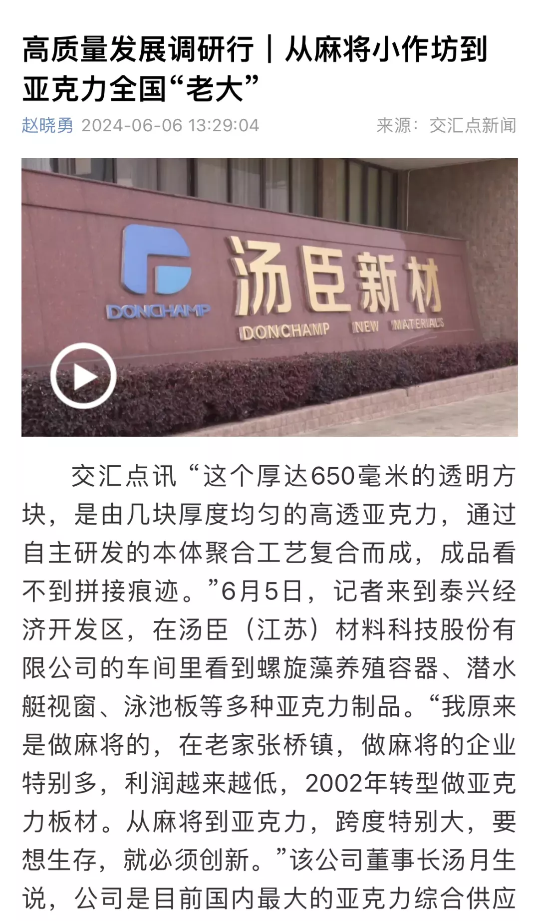 从飞行训练模拟机到亚克力潜水艇视窗,如今汤臣(江苏)材料科技股份有限公司的产品已可“上天入海”。汤臣(江苏)材料科技在可塑性高分子材料行业深耕多年,并发展成为行业领军企业。