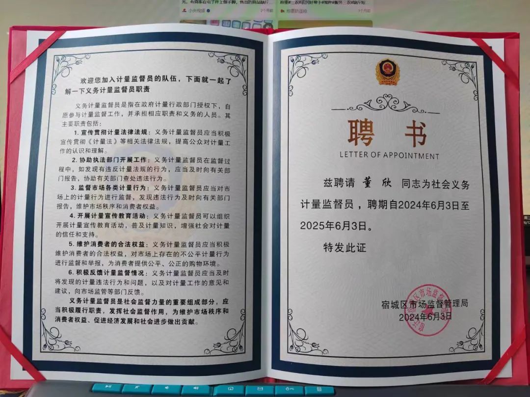 “我所在的行业与计量公平息息相关,日常工作的流程、工作理念与社会义务计量监督员的要求也不谋而合,所以得知招募社会义务计量监督员就立马报了名。”