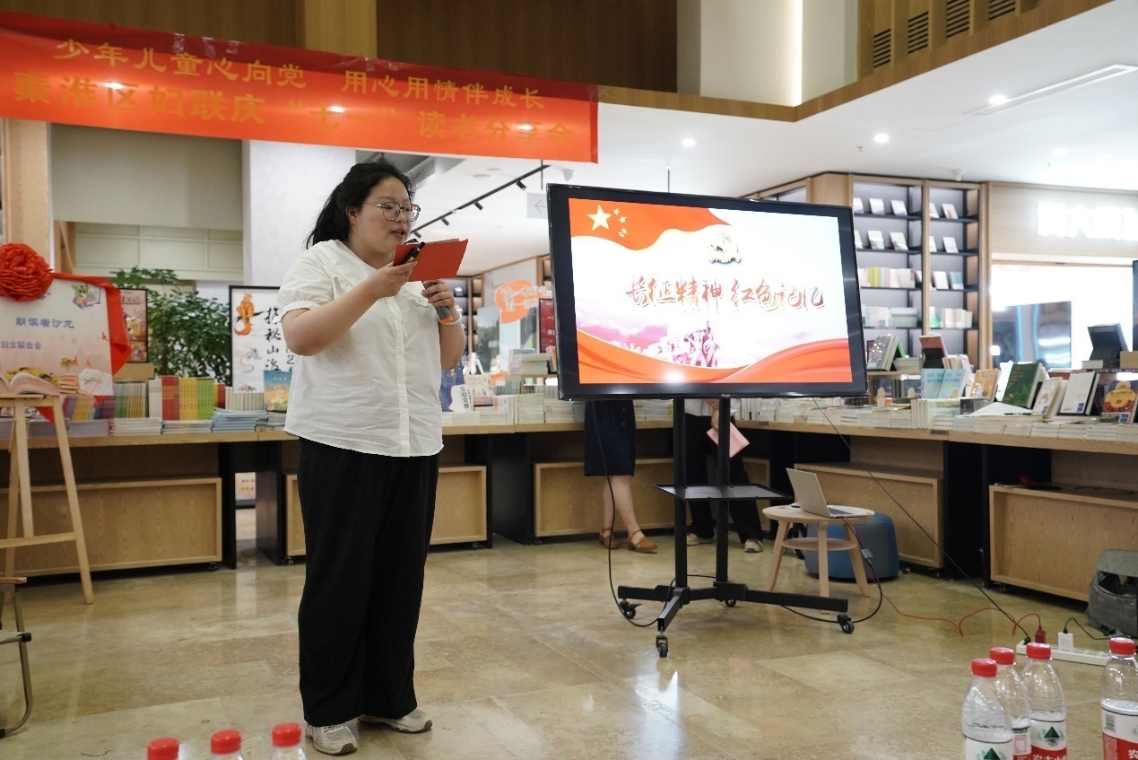 秦淮区妇联副主席范海燕在活动开始送上寄语。她说,在“七一”来临之际,与石鼓路小学、朝天宫民族小学的孩子们一起开展读书分享会,感受书香的魅力,体验阅读之美,希望同学们读红色经典、悟红色精神,让红色精神永远传承下去!