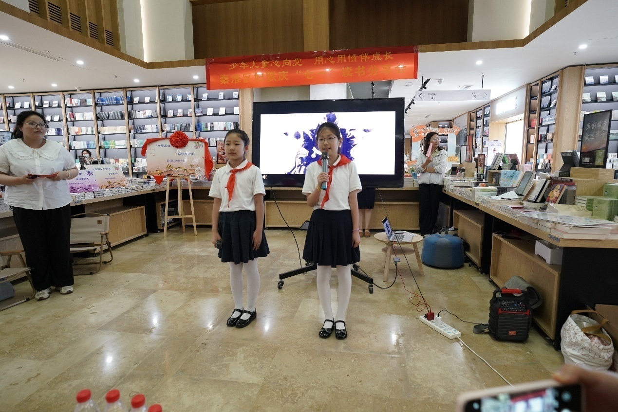 红色七月,党旗飘飘。为庆祝中国共产党成立103周年,引导少年儿童阅读红色经典书籍,传承红色基因,争做时代新人,6月26日,由秦淮区妇联、秦淮区教育局主办,南京市秦淮区钟晓敏爱心工作室承办,锦创集团、南京锦创书城文化传播有限公司协办的“少年儿童心向党 用心用情伴成长”庆“七一”读书分享会活动在锦创书城(朝天宫店)举办。