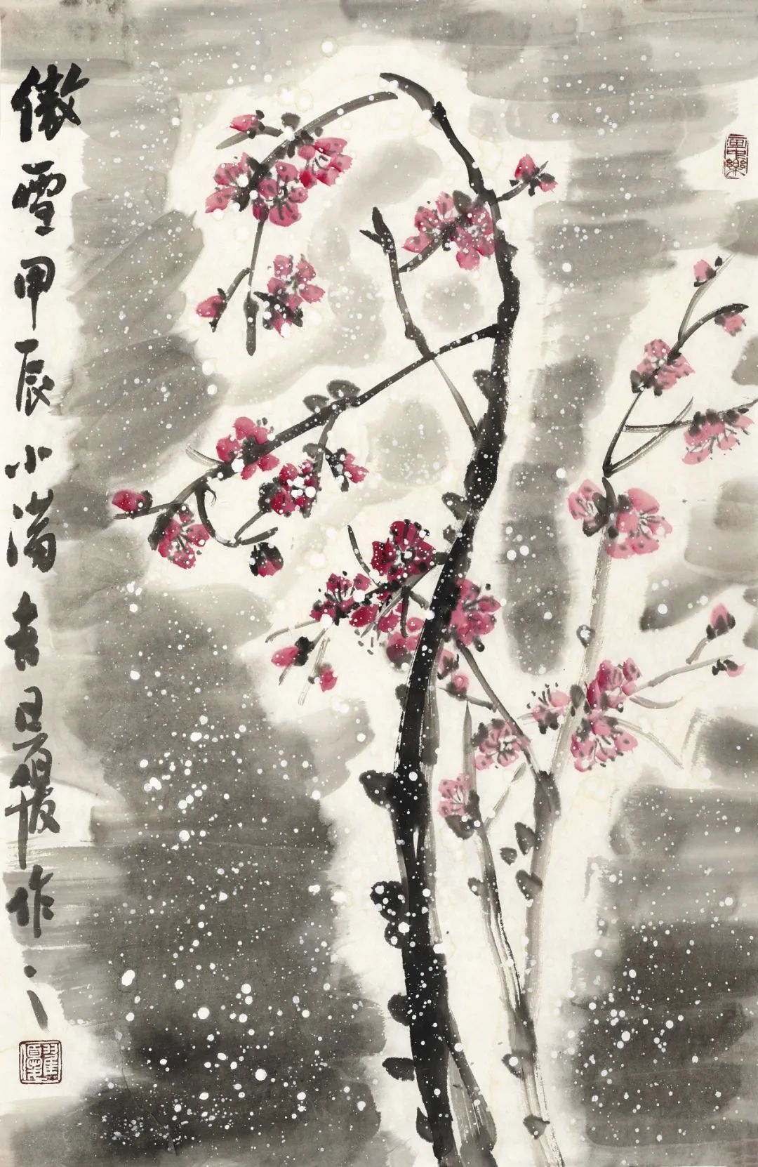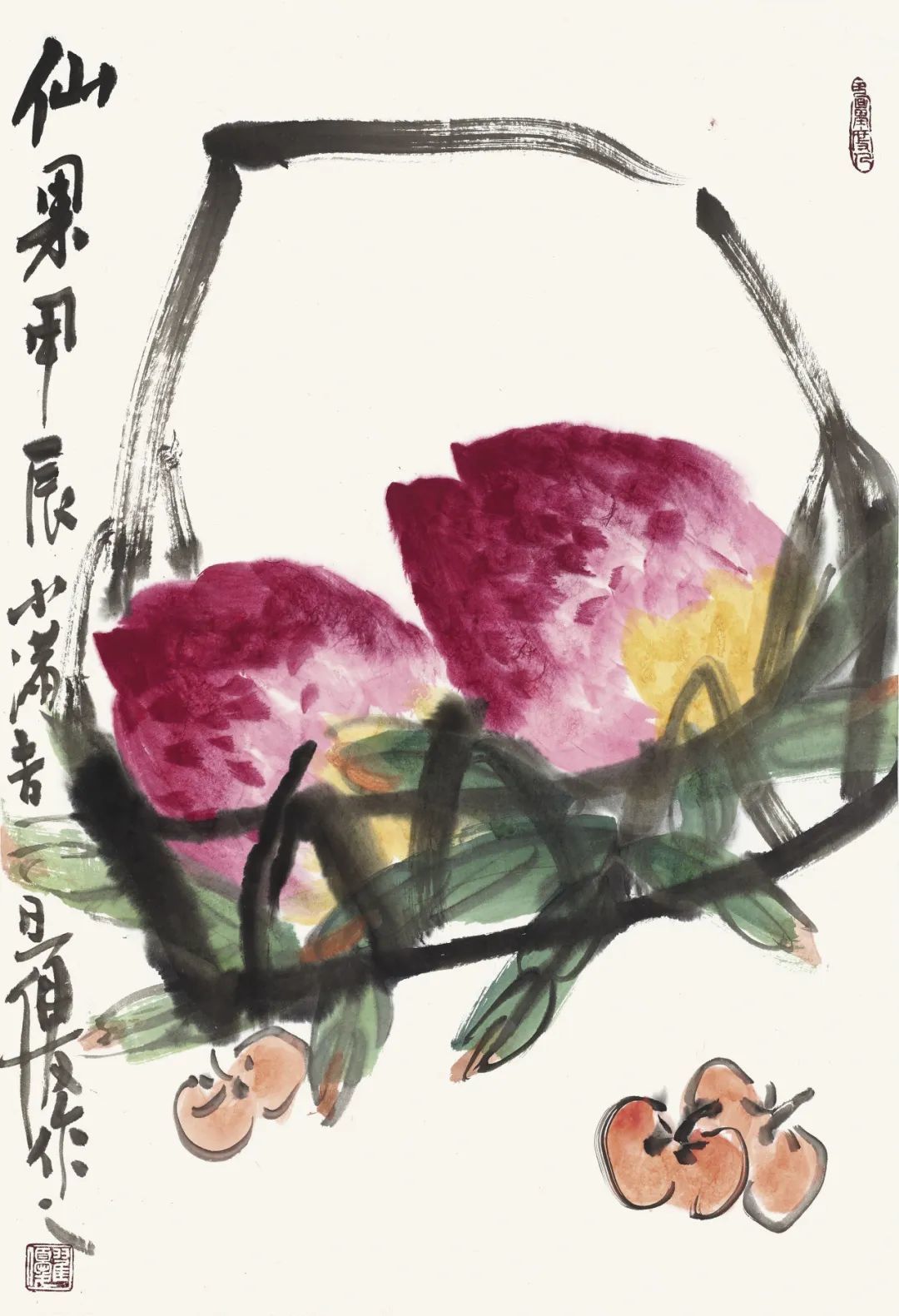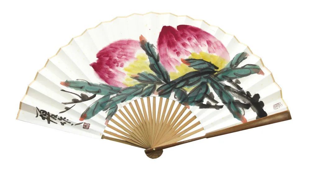 翟优生于汉高祖刘邦故里——徐州沛县,家乡厚重的历史文化,使他养成了豁达开阔的胸襟,形成了激情豪放的艺术风格。他的作品富有金石味,线条刚劲凝练、涩拙厚重,仿佛蕴含着千钧之力。他能够娴熟运用水墨枯湿浓淡的变化技巧,善于营造具有强烈冲击力的视觉效果和丰富的的画面层次。作品《多利》,用枯笔飞白疾速扫出树干,浓墨点苔出树的疤痕和斑驳的树皮,顿显“润含春雨,干裂秋风”的艺术效果,将南国荔枝树在生长过程中,不畏暴雨狂风,电闪雷击,坚韧不拔的精神气质展现的淋漓尽致。花青画叶,浓墨勾筋,变化有致,牡丹红点出的颗颗荔枝鲜果,掩映于树叶之间,让人垂涎欲滴,不禁想起苏轼的名句“日啖荔枝三百颗,不辞长作岭南人”。