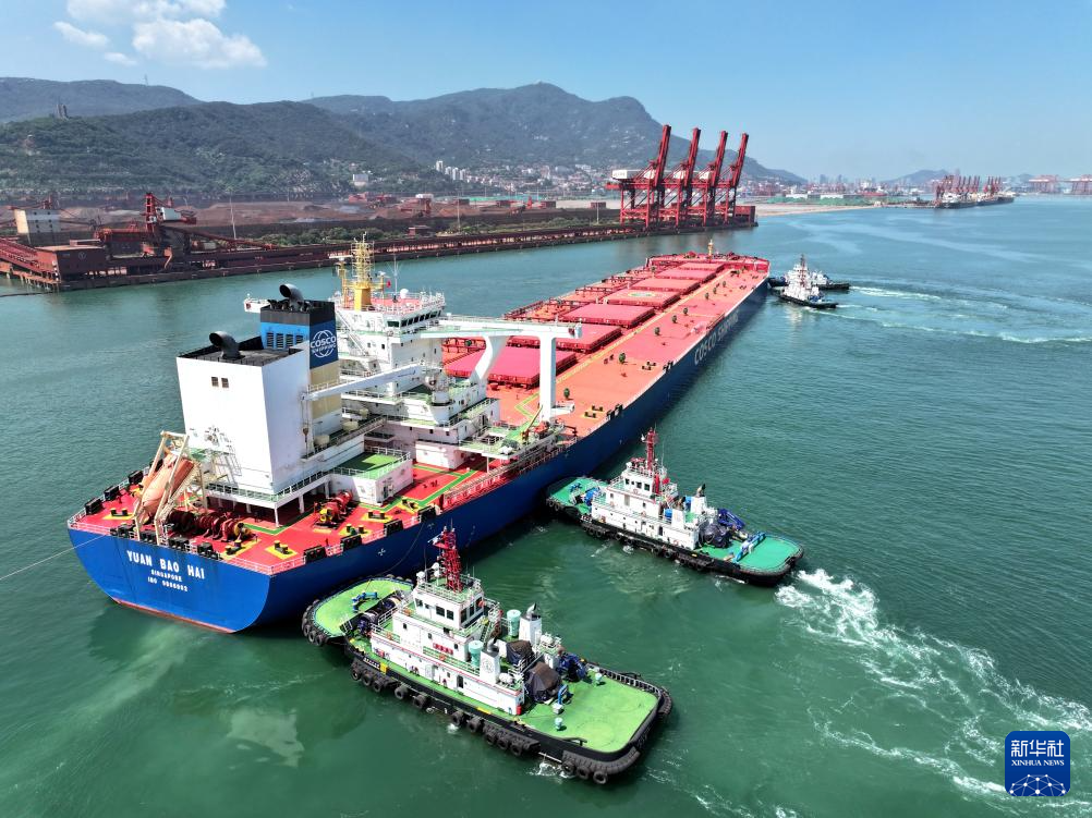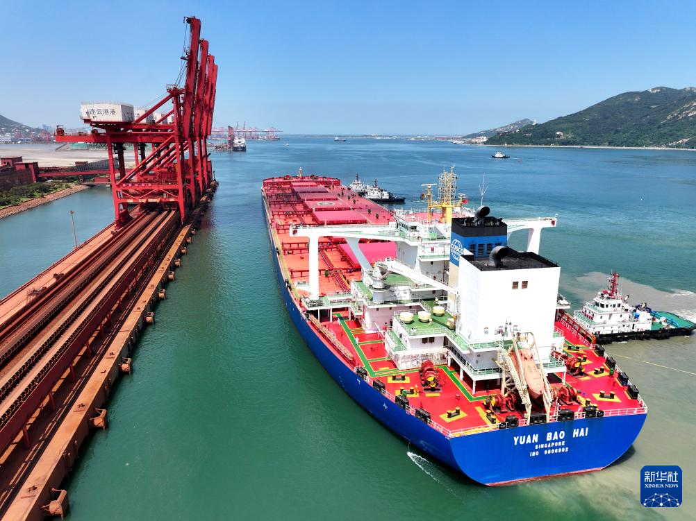 8月12日,从巴西驶来的满载40万吨铁矿石的新加坡籍“远宝海”轮靠泊江苏省连云港新苏港码头。该轮长362米、宽65米,是今年以来靠泊连云港的第15艘40万吨级货轮。