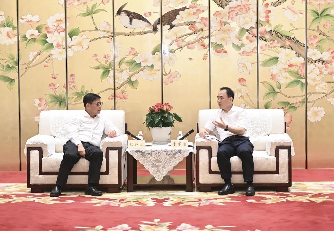 8月14日下午,市委书记宋乐伟会见了中国铁路通信信号集团有限公司党委书记、董事长、总经理楼齐良一行,双方就深化互利合作、培育发展低空经济进行深入交流。市委常委、常务副市长王先正,副市长林斌,中国铁路通信信号集团有限公司党委常委、副总经理赵晓东参加会见。
